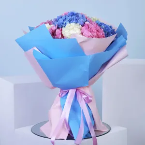 Sometimes, the best option is to opt for multi-coloured bouquets, such as pairing different colours with blue. Blue and white flowers symbolize peace, balance, and unity.