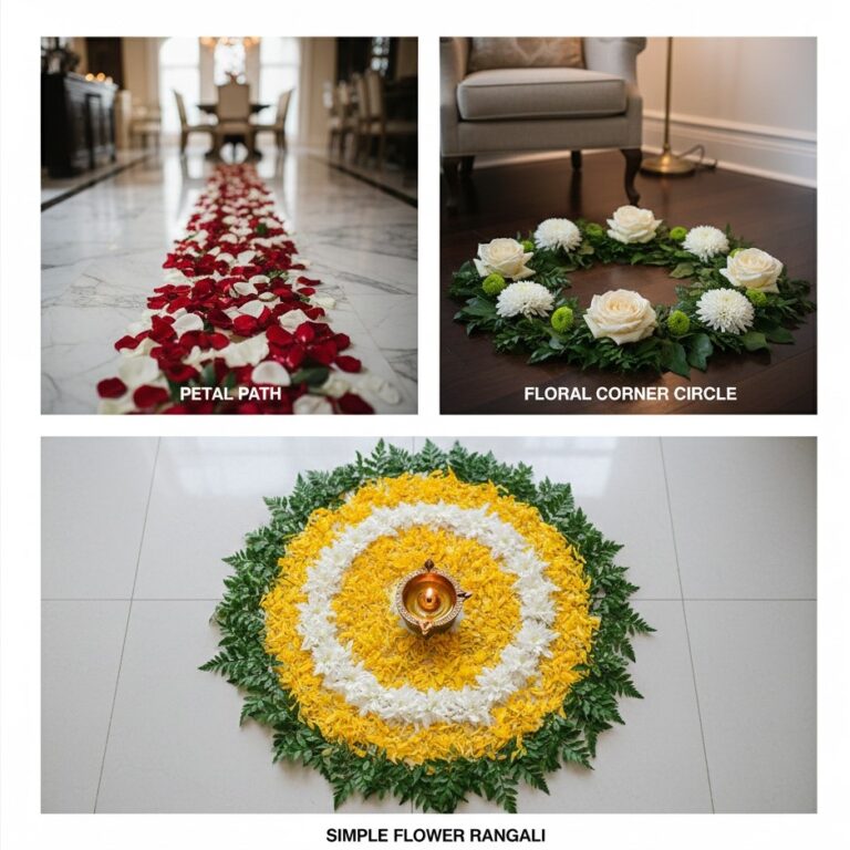 Yes—do a clean “petal path” or a small floral corner instead of scattering petals everywhere to avoid mess and slipping.