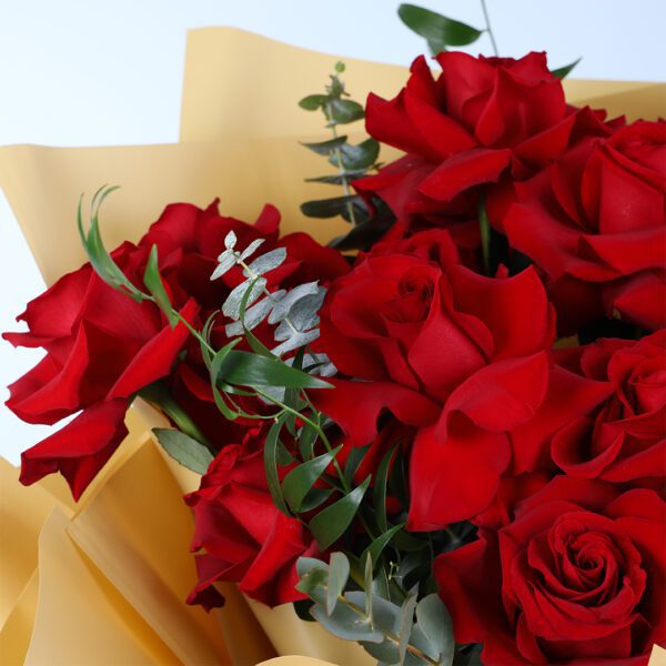 A bouquet of 15 fresh red roses beautifully arranged with green foliage is a classic choice for expressing love, admiration, and heartfelt emotions. It’s ideal for Valentine’s Day, anniversaries, or romantic surprises.