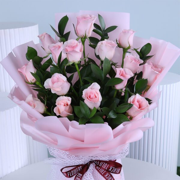 Soft baby pink roses arranged elegantly in premium wrapping, symbolizing grace and admiration. A perfect gift for any heartfelt occasion.