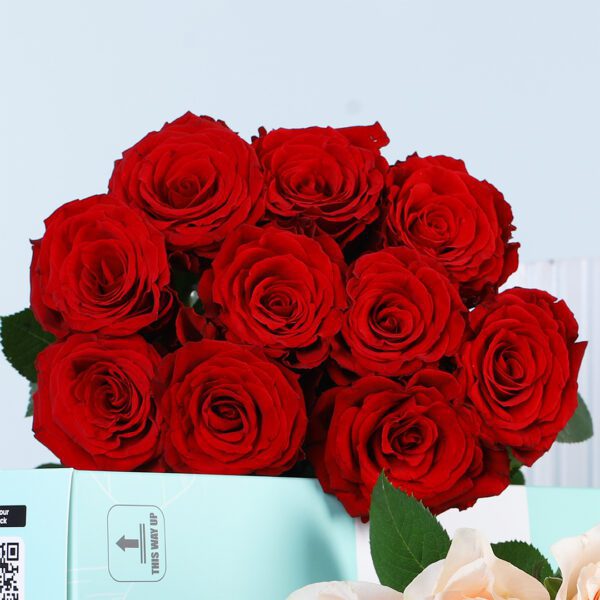 A delicate red and peach rose bunch that lets you design your own floral story, arrange it your way in the included glass vase and make every moment feel special.