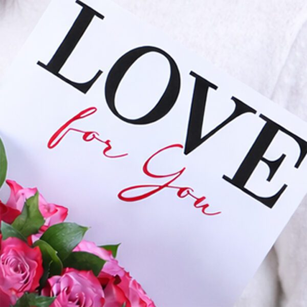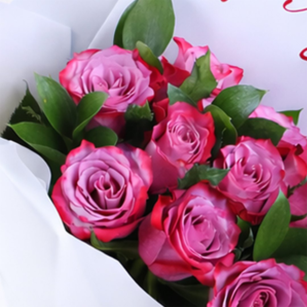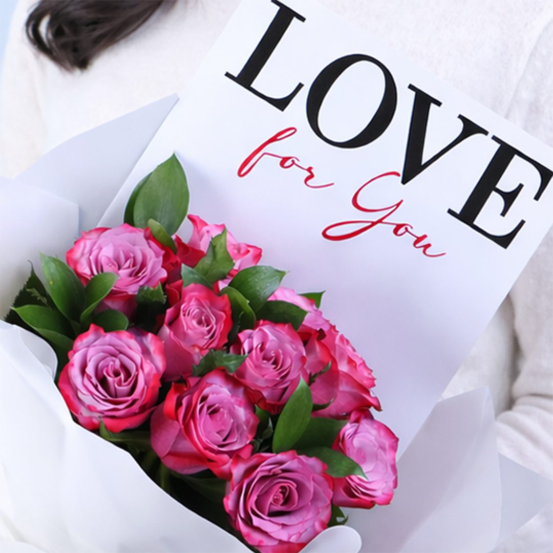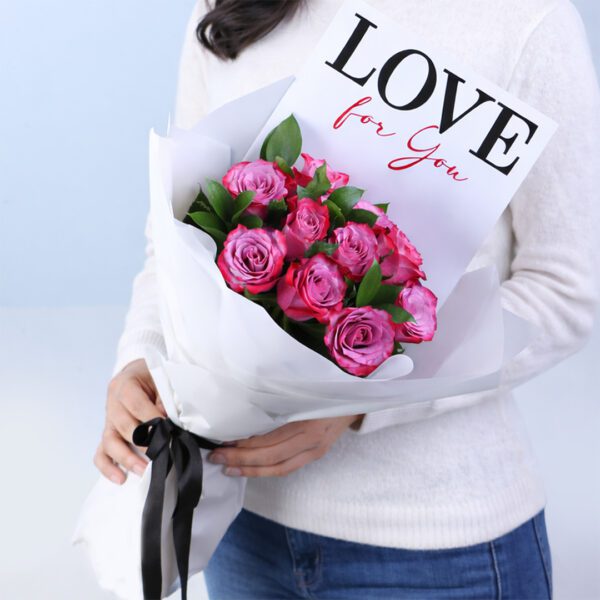 A sweet Valentine’s bouquet of 10 premium pink roses (10 stems) with ruscus is made to express your feelings in the cutest way. Perfect for gifting to someone special with a love note vibe.
